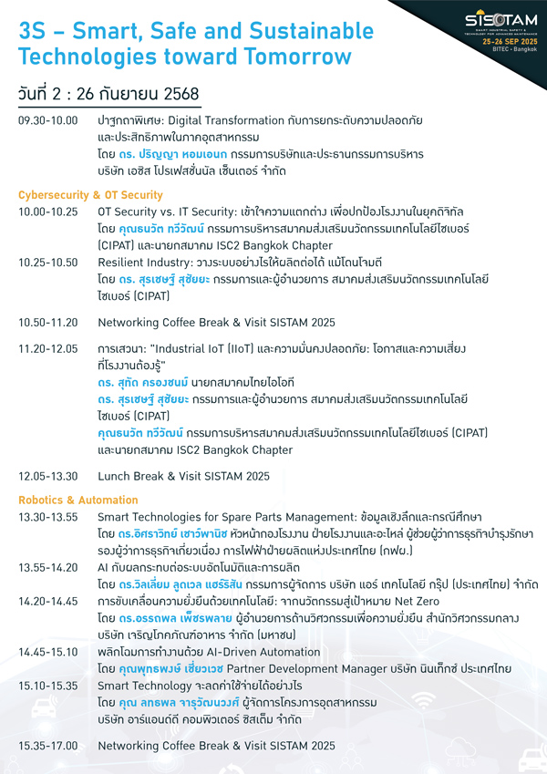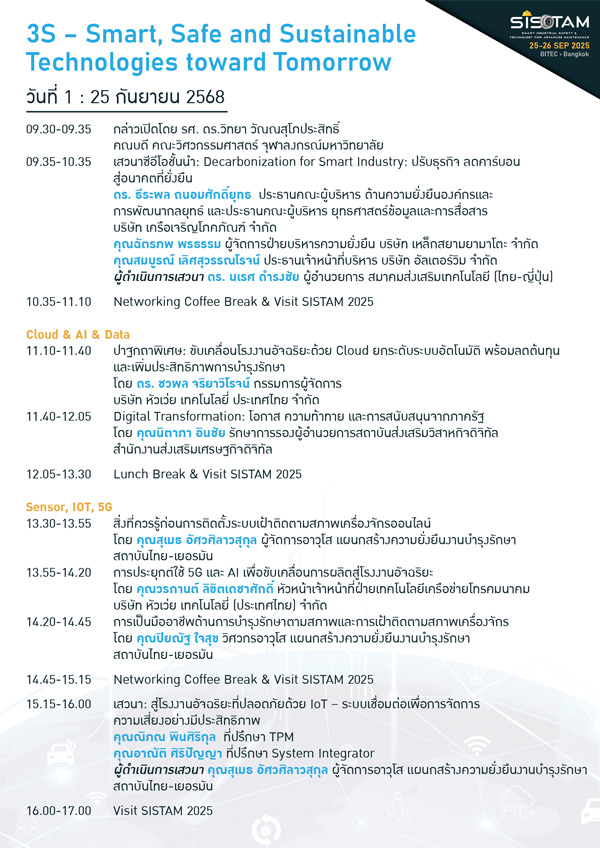 The ‘Smart, Safe, and Sustainable Technologies toward Tomorrow’ conference programme has been designed to maximise the opportunities for attendees with a complimentary visit to the SISTAM 2025 exhibit hall to see the latest technologies and products, and to network with exhibitors.